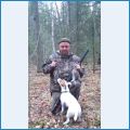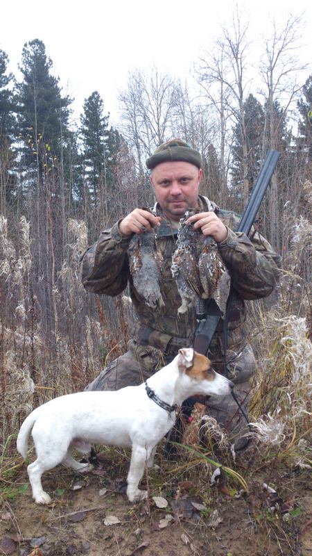 Скажем так, наши собаки норные изначально, но белок любит, аж пищит:-) Я ему одну дал, он ею подкрепился по дороге, а птицу он не понимает, для него она что-то новое:-) Нюхал очень упорно, пытался на зуб попробовать, но этим всё и закончилось. Мы вот по дороге нашли лёжку лосиную, лось видимо её метил мочой, потому что Колумб на этой лежке валялся и тёрся всем телом, еле отогнал, вывозился весь в грязи, потом пометил всё это дело и пошли дальше:-) До этого он ондатр мне с воды доставал, птицу он не воспринимает как дичь:-) Проявляет интерес из-за меня, я стреляю, значит ему нужно обозначить своё участие.