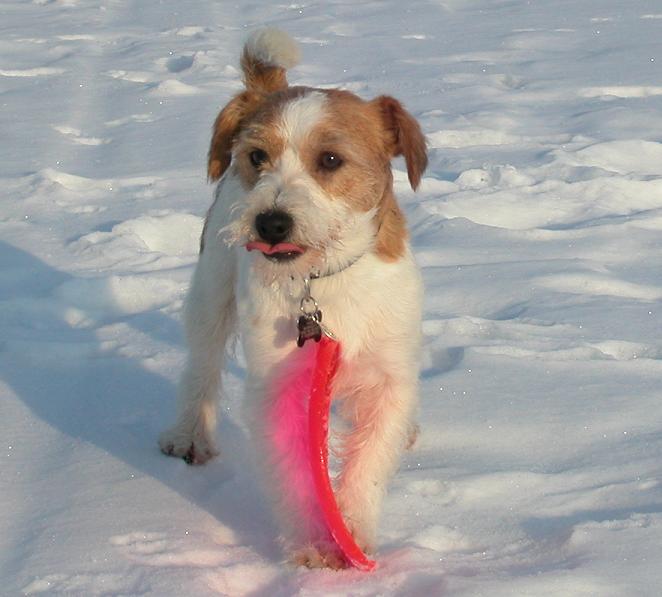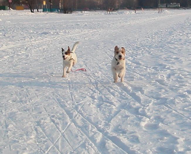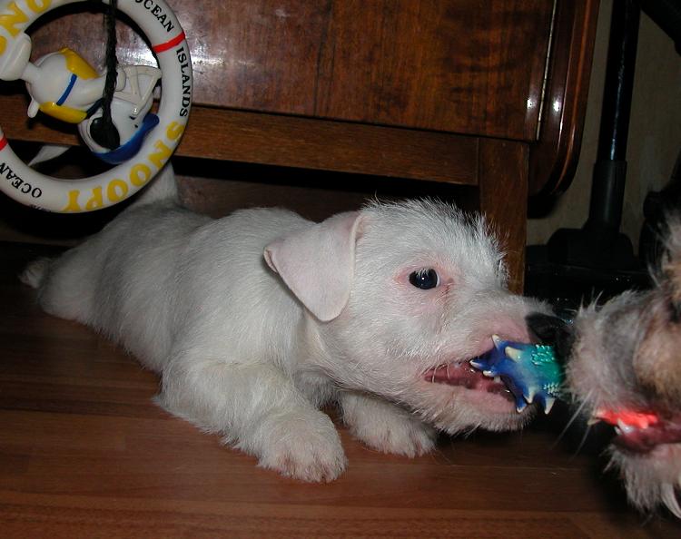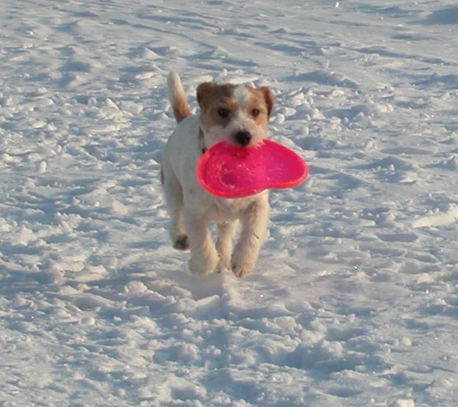 Маркусёнок приехал вчера весь замученный, т.к. поездка в машине для него пока проходит с некоторыми сложностями. Мы ему организовали большое, просторное, нууу просто замечательное место, положили ему под нос кучу игрушек, но первые часа 2 он только дрожал, спал и приходил в себя. Потом, выспавшись, начал играть и резвиться. Часов в 12 ночи мы наконец утихомирились, разошлись по своим местам =)... Спал чутко(да и я тоже особо не выспалась). На каждый шорох, вскакивал в надежде, что с ним поиграют....секунд 15 ждал, потом опять ложился. И так практически всю ночь. По звонку будильника вместе встали. Я быстрее напялила штаны, кофту, куртку, шапку. Взяла его под руки и быстрее на улицу. Там мой умничка сделал все свои дела, мы погуляли минут 15( больше не хотел, упирался и отказывался наотрез идти дальше) и пошли домой. Помыли лапы. Минут через 20 после прогулки покушали и я потопала на работу.....